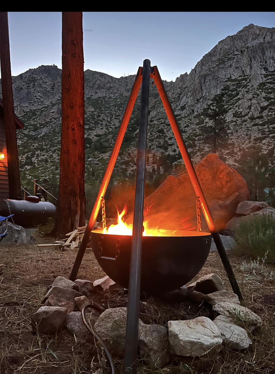 Our heavy-duty tripod frame and welded log chains create a signature hanging cauldron look — and they’re not just for show. Use the chains to easily tilt the bowl for better heat direction and visibility. Check out the photo 👈 to see it in action!